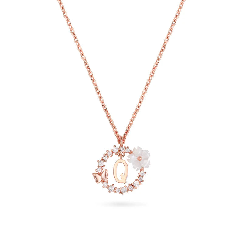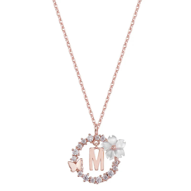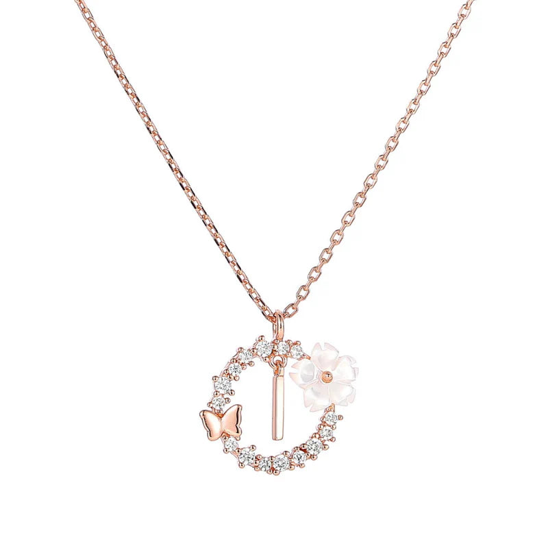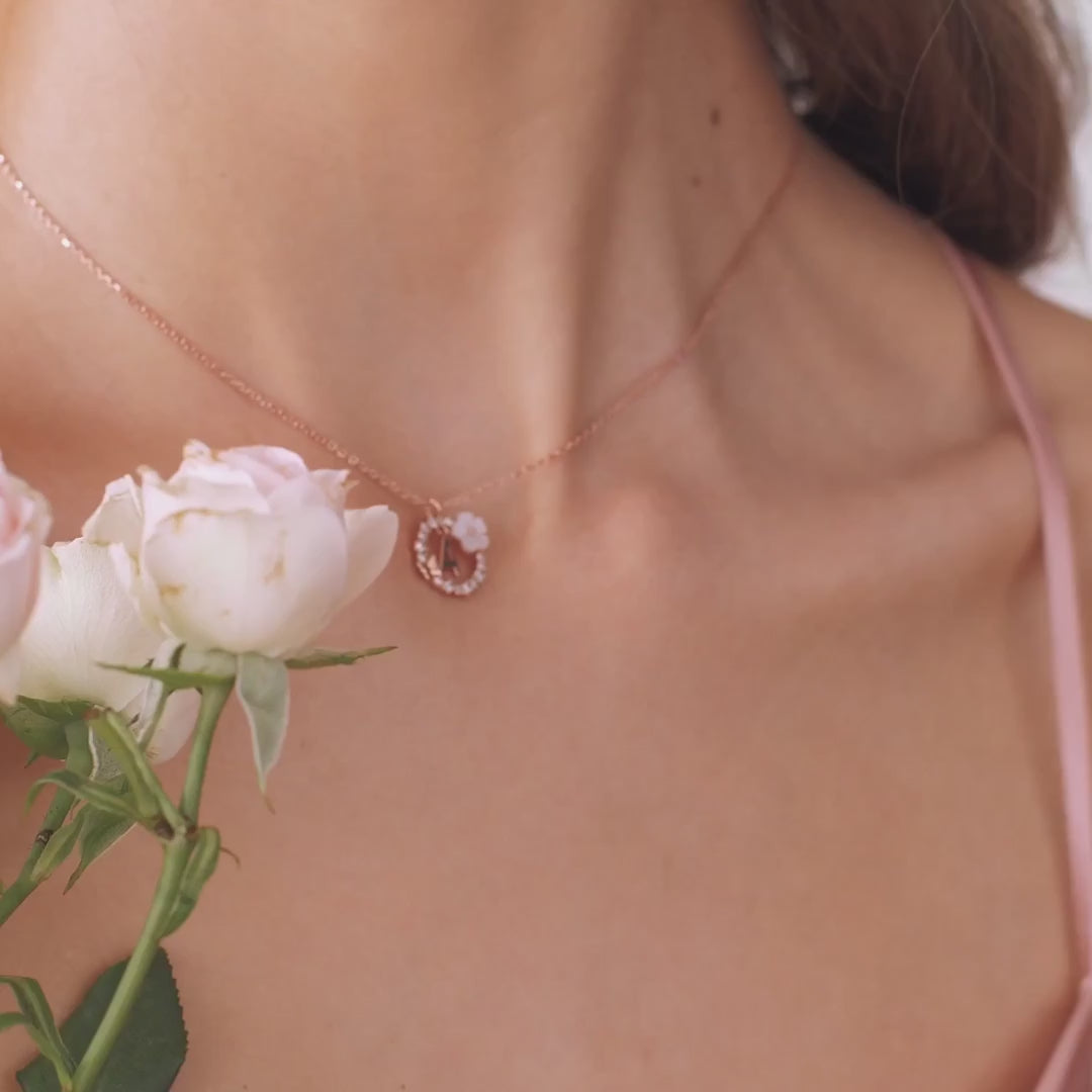 - Materiał: wysokiej jakości srebro próby 925, powłoka z prawdziwego różowego złota, cyrkonia (imitacja diamentu), kwiat z masy perłowej